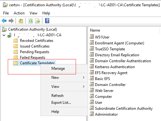 Right-Click Certificate Templates, choose Manage