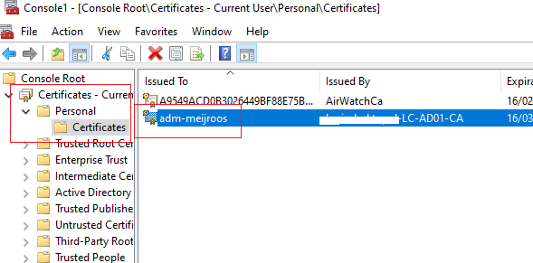 This certificate can now be used to authenticate in Workspace ONE Access via the Cloud Certificate authentication policy! Please read my next blog on how to configure this!