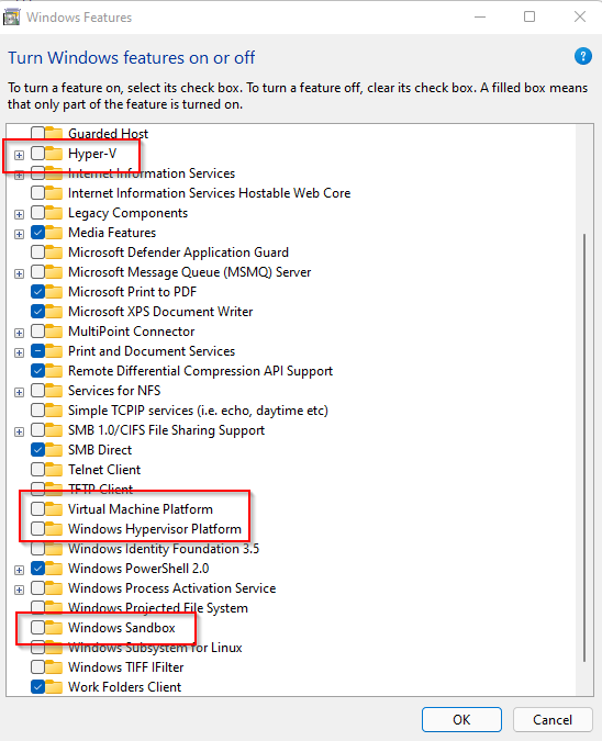 To work around the problem, I decided to switch over to HAXM, since I’m not using Hyper-V anyway. To use HAXM you will have to disable the following roles: